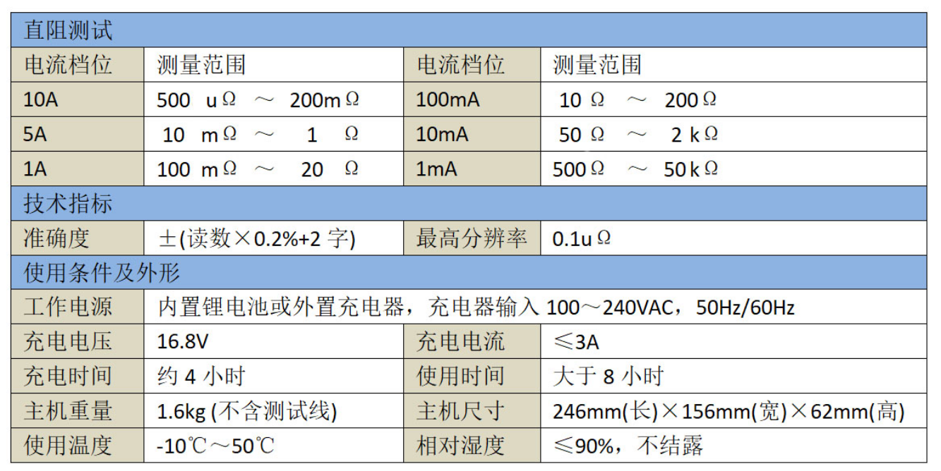 3、量程寬、精度高,500uΩ~50KΩ。